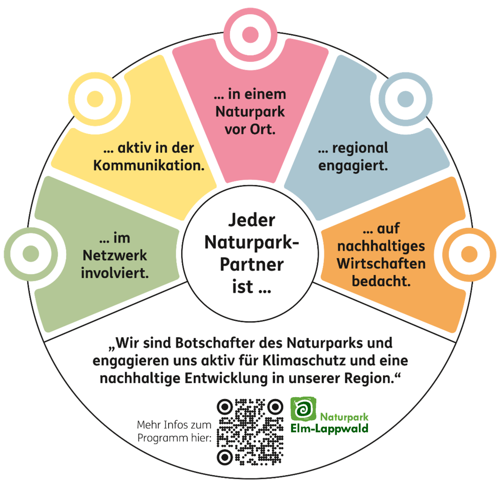 Gemäß dem Naturparkplan 2033 soll das Markenprofil u.a. durch Partnerschaften und Kampagnen gestärkt werden. Dafür ist das Programm „Naturpark-Partner“ des Verbandes Deutscher Naturpark e.V. besonders geeignet, welches die Kooperation zwischen einem Naturpark und regionalen Betrieben, Institutionen und Organisationen unterstützt. Das Partnerprogramm steht grundsätzlich Betrieben aller Branchen offen, die die Ziele und Werte eines Naturparks teilen und ist in zahlreichen Naturparken bereits erfolgreich etabliert. Für den Naturpark Elm-Lappwald wäre die Teilnahme /Durchführung des Programms für die Stärkung und Sichtbarkeit bedeutend.